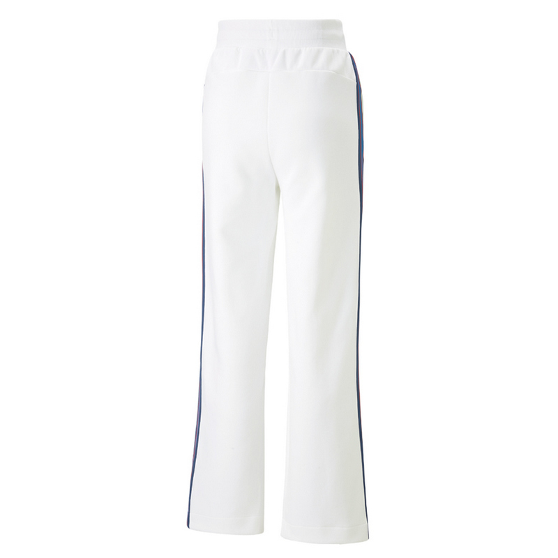 Әйелдерге арналған BMW M Motorsport ақ шалбары. Екі жағындағы бүйірлік жолақтар BMW M түстерінде. Сол аяғында – түрлі түсті Puma логотипі. Оң аяғында – BMW M Motorsport жазуы. Классикалық пішім. Материалы: 77 % мақта, 23 % қайта өңделген полиэстер. Түсі: ақ.