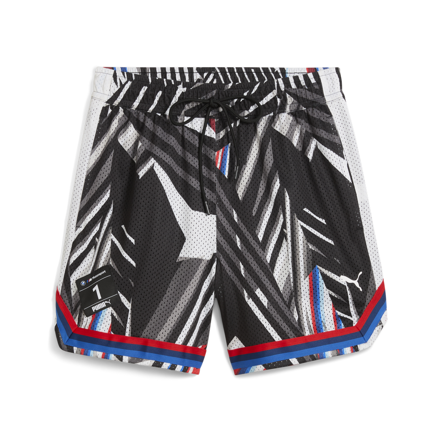 BMW MMS AOP ерлер шолақ шалбары — жылдамдық рухын бейнелейтін стиль, PUMA мен BMW M Motorsport серіктестігі аясында жасалған. Дизайны баскетбол эстетикасынан және BMW M4 GT4 көлігінің аңызға айналған ливреясынан шабыт алған — бұл шолақ шалбарды белсенді өмір салты мен жарқын қалалық стиль үшін мінсіз етеді. Еркін отырысы, тыныс алатын материал (100% торлы полиэстер) және бауы бар созылмалы белдік барынша жайлылықты қамтамасыз етеді. Жарқын толықбет принті (AOP), етек пен қалтадағы BMW-нің фирмалық түрлі-түсті жолақтары, жанынан тігілген сызықтар мен сан тұсындағы PUMA логотипі премиум стильді айқындайды. Қолайлы жанындағы және тік қалталар бұл модельді одан әрі ыңғайлы етеді. Түсі: BMW акценттері бар қара және ақ. Динамиканы, технологияны және мінсіз талғамды бағалайтындар үшін тамаша таңдау.