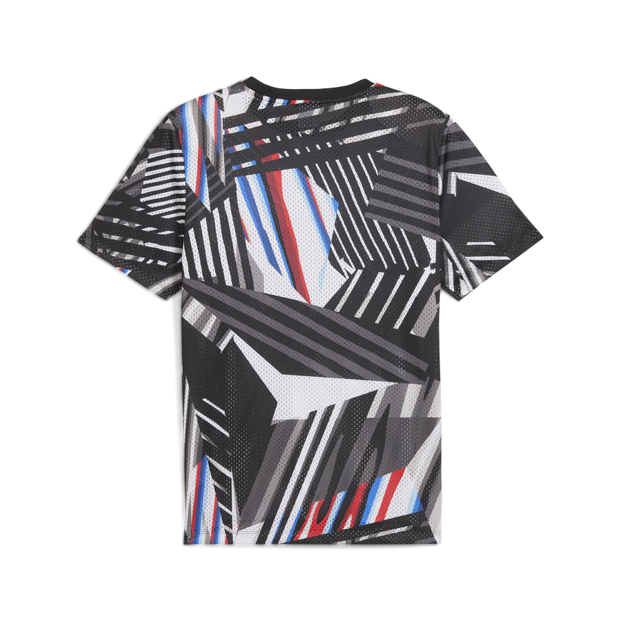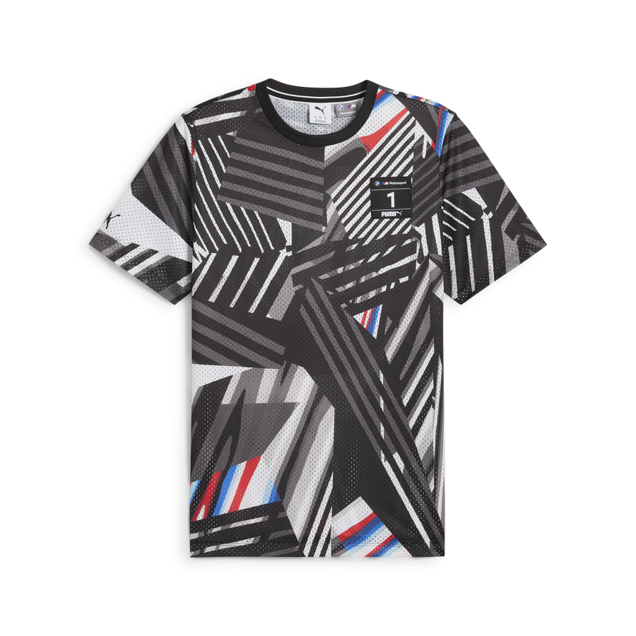 Мужская футболка BMW M Motorsport — эффектное сочетание спортивного характера и уличного стиля. Модель украшена фирменным всеповерхностным камуфляжным принтом, вдохновлённым гоночной ливреей BMW M4 GT4, что придаёт ей дерзкий и динамичный вид. Свободный крой и лёгкий полиэстер обеспечивают комфорт в любое время дня. Дизайн дополнен логотипом BMW M Motorsport на груди и фирменным принтом PUMA на правом рукаве. Стиль в духе баскетбольной моды делает эту футболку универсальной — для спорта, города и активной жизни. Настоящая находка для ценителей автоспорта и ярких образов.